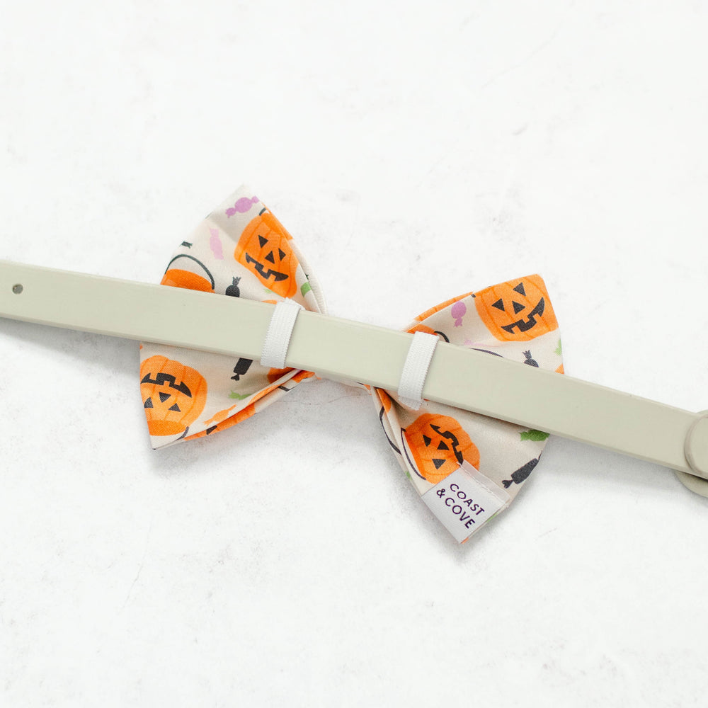 All of our pet bow ties are hand-crafted in California and feature two elastic straps on the back to easily slide onto your pup’s collar.