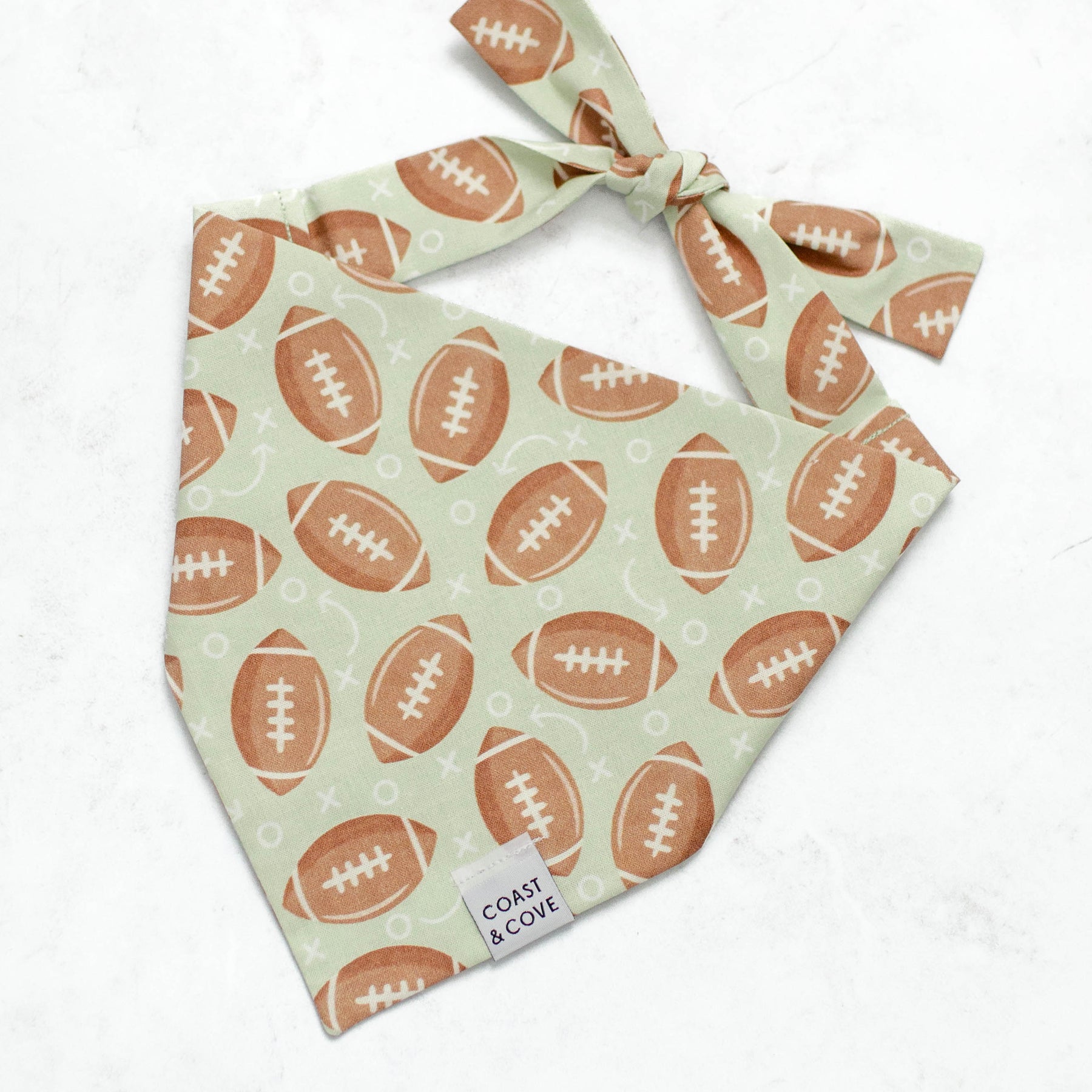 All of our pet bandanas are hand-crafted in California. They feature a triangle shape with matching ties and are designed to be worn tied on in a double knot so you can easily adjust the sizing to fit your pet! All of our bandanas will come finished with a Coast & Cove tag. Please refer to our size chart for length based on your pets neck. If your pet is between sizes we recommend sizing up.