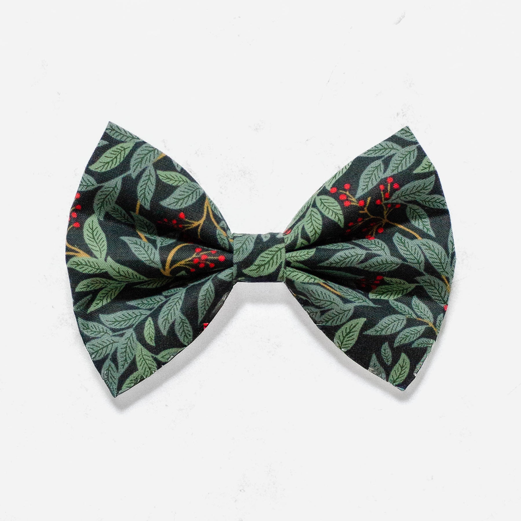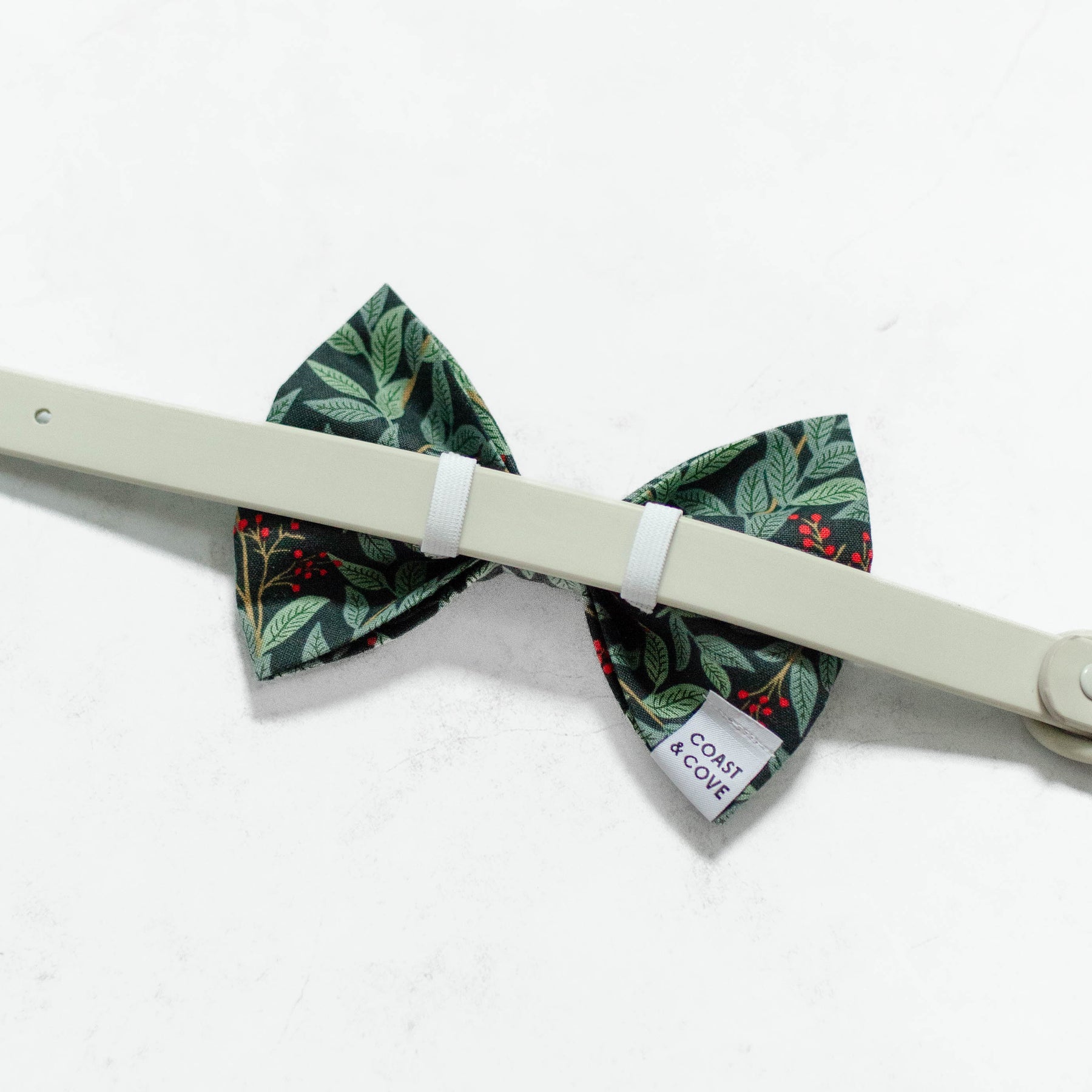 All of our pet bow ties are hand-crafted in California and feature two elastic straps on the back to easily slide onto your pup’s collar.